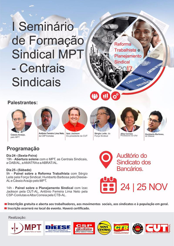 A inscrição é gratuita e aberta aos trabalhadores, movimentos sociais, sindicatos e sociedade em geral
