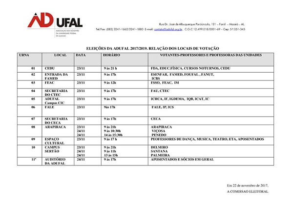 Serão 11 locais de votação espalhados pelos Campi da Universidade, entre a capital e o interior, no período de 9h às 17h e na sede da Associação, no Farol