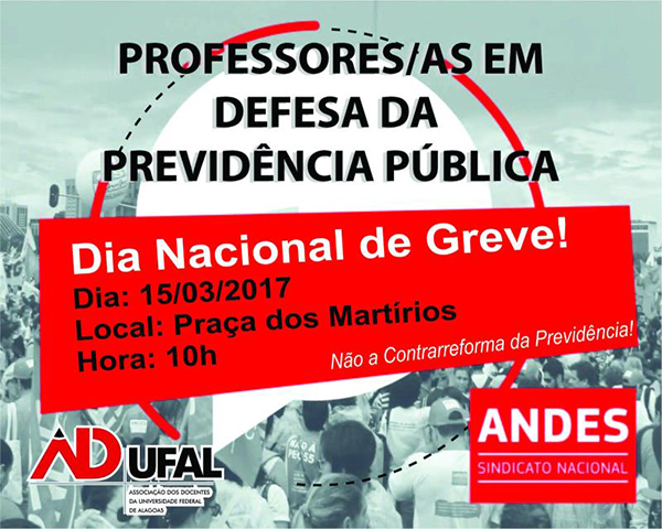 Para a diretoria da Adufal, no dia 15 de março a aula será nas ruas