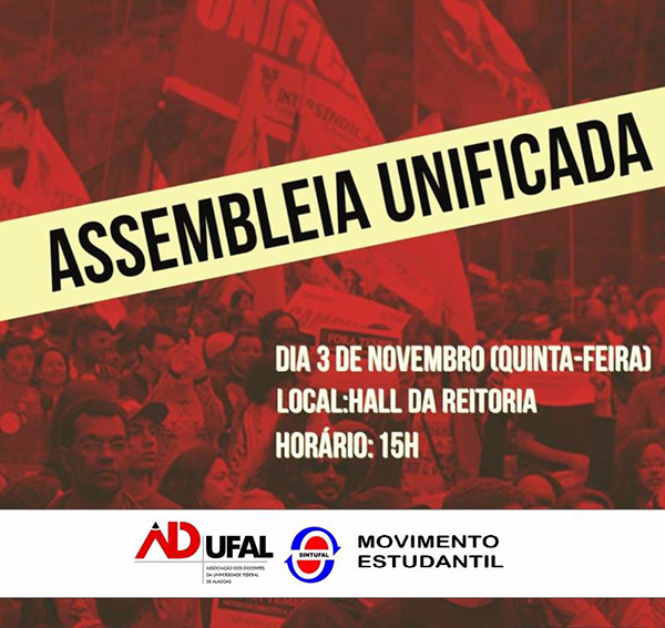 A última Assembleia dos Docentes aconteceu no dia 25 de outubro e aprovou alguns encaminhamentos para intensificar as lutas, incluindo essa assembleia unificada
