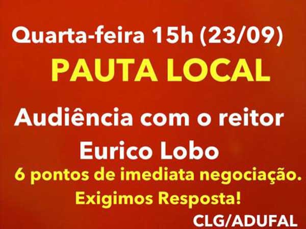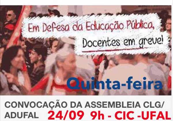 CLG/Adufal convoca docentes para assembleia nesta quinta-feira (24)