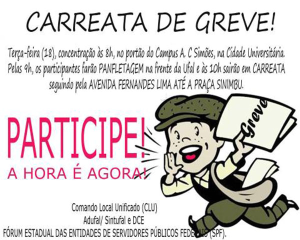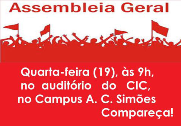 Comando Local de Greve (CLG) da Adufal convoca assembleia para quarta-feira (19), às 9h no CIC.