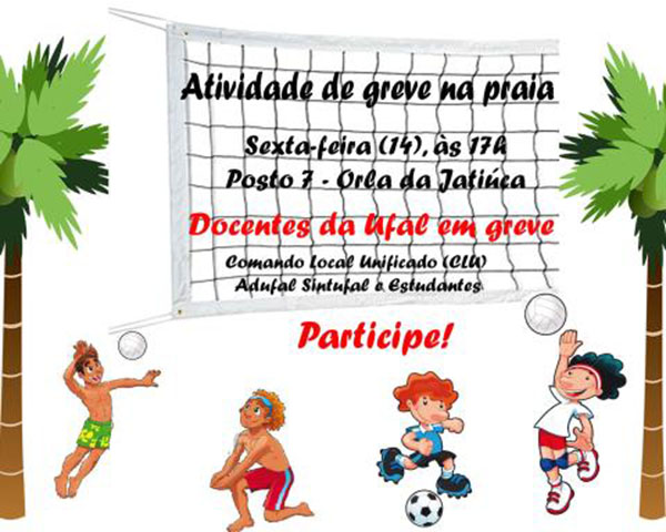 Docentes da Ufal, em greve, realizam atividades desportivas na orla de Jatiúca