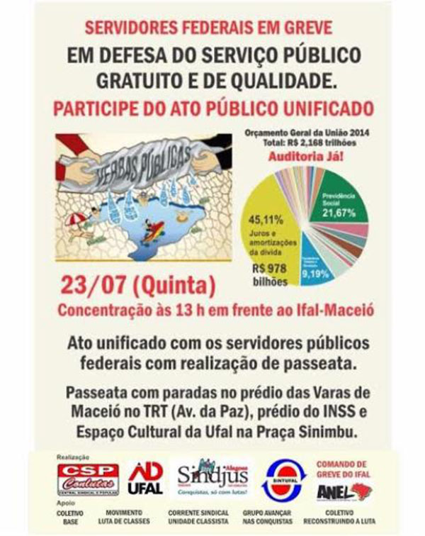 Professores, servidores públicos federais, em greve, e estudantes farão passeata por ruas de Maceió