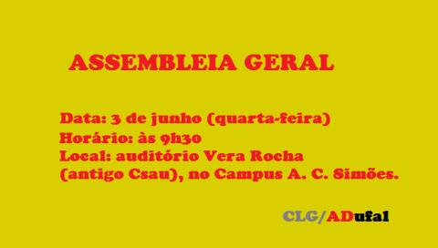 CLG/Adufal realiza assembleia, nesta quarta-feira (3)