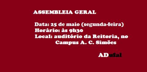 Adufal realiza assembleia, na segunda-feira (25), pela manhã