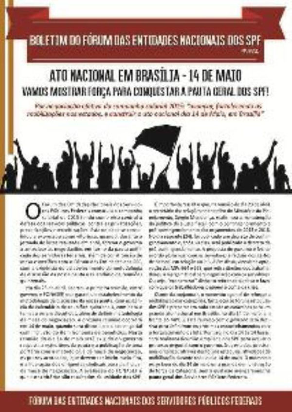 Boletim do Fórum dos SPF convoca servidores para ato em Brasília, dia 14