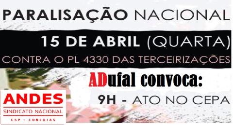 15 de abril é Dia Nacional de Paralisações contra o PL 4330 e as MPs 664 e 665