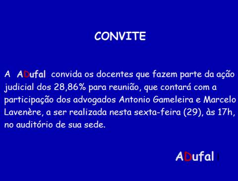 Adufal faz reunião sobre a ação dos 28,86%, nesta sexta-feira (29), às 17h, em sua sede