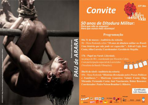 Encontro acontece em 31 de março e abordará os 50 anos da Ditadura Militar no Brasil