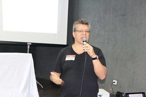 O dirigente da CSP-Conlutas, Paulo Barela, fez um histórico da dívida, lembrou as privatizações das empresas estatais feitas sob o argumento do pagamento da dívida, expôs o conflito de interesses e a tomada de posição do governo que opta por beneficiar investidores e banqueiros em detrimento dos serviços públicos e das pessoas que realizam esses serviços.