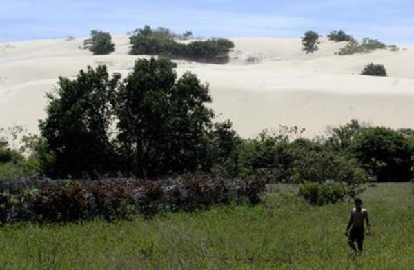 * foto à esquerda: Eldem Jornal A Notícia / foto à direita: Área indígena no litoral de Itapipoca disputada por empresários espanhóis