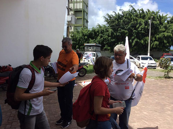 Docentes da Diretoria e do Conselho de Representantes da Adufal e lideranças estudantis circularam pelos blocos da universidade dialogando com a comunidade acadêmica sobre a necessidade do envolvimento nas manifestações e a importância da participação popular para a resistência nesse momento crucial da história brasileira. O recado deixado foi a necessidade de se construir uma ampla frente dos setores democráticos e progressistas para enfrentar o conjunto de medidas que desmontam a CLT, findam com a aposentadoria, sucateiam os serviços públicos e entregam as riquezas do país aos interesses do fulâneos. Um legítimo pacote de maldades promovido pelo consórcio golpista.
