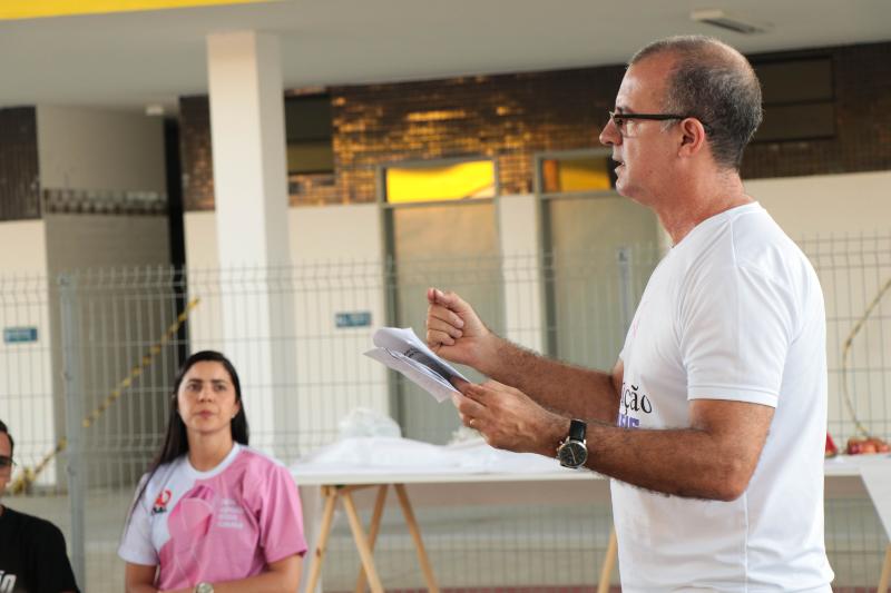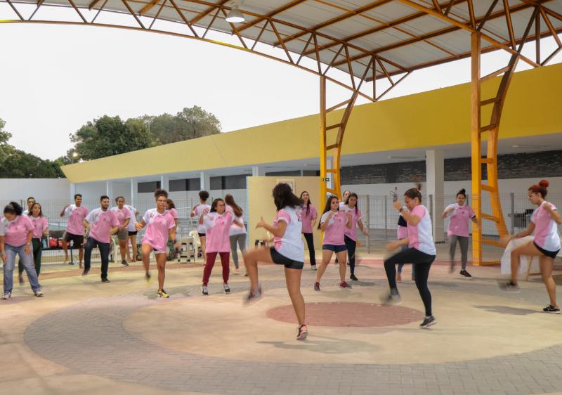 O professor Jean Toscano deu início à atividade falando sobre os efeitos do exercício físico como fator preventivo e também como auxiliador no tratamento de pessoas com câncer. Após a abertura, as monitoras e estudantes do IEFE Patrícia Maria da Silva, Railma Barbosa Silva e Mônica de Lima Andrade guiaram a atividade de dança e também falaram um pouco sobre a funcionalidade desta.