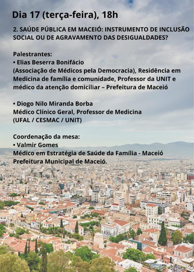 18h - MESA 2: Saúde Pública em Maceió: instrumento de inclusão ou agravamento das desigualdades?