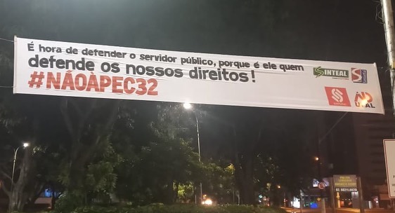 Por isso, a entidade realizou lives educativas; convocações para greves em defesa dos serviços públicos; participou de atos públicos; produziu documento de repúdio à proposta; reuniões conjuntas com outras entidades alagoanas para definição de estratégias de mídia contra a PEC 32/2020; produção de cards para as redes sociais; faixas espalhadas por Maceió e pelo interior de Alagoas; outdoors e produção de podcasts.