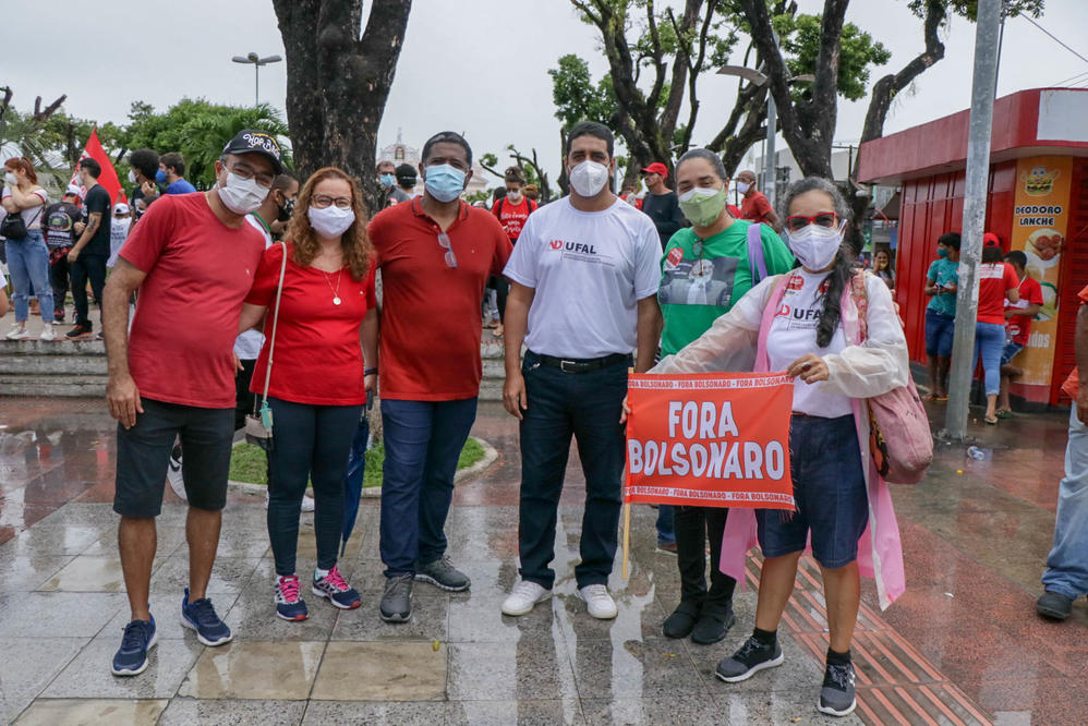 A Adufal se fez presente, através da participação de integrantes da Diretoria e da base docente, no ato público do dia 3 de julho de 2021, em Maceió, contra o governo de Jair Bolsonaro. Mesmo com forte chuva, centenas de manifestantes continuaram o percurso que saiu da praça Centenário, no bairro do Farol, até a Praça Deodoro, no centro da cidade.