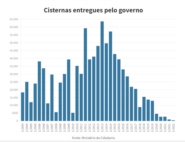Ao longo dos quatro últimos anos, o governo federal reduziu e em 2022 praticamente parou as construções de cisternas, tecnologia fundamental para garantir o acesso à água a famílias que convivem com a seca.