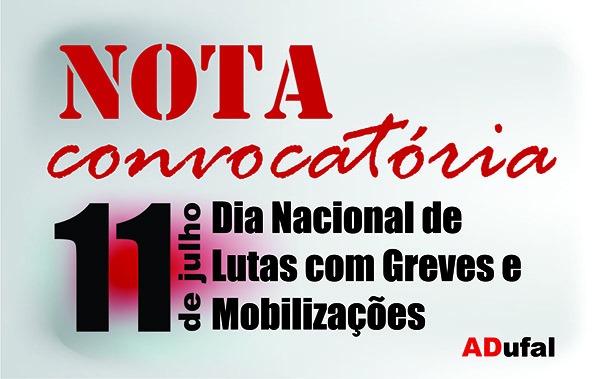 A Associação dos Docentes da Universidade Federal de Alagoas (Adufal) reforçou por Nota Convocatória a participação de sua base sindical – os professores da Ufal – nas atividades desta quinta-feira (11) - Dia Nacional de Lutas com Greves e Mobilizações e as atividades na Ufal estão paralisadas. (veja a íntegra da Nota Convocatória)