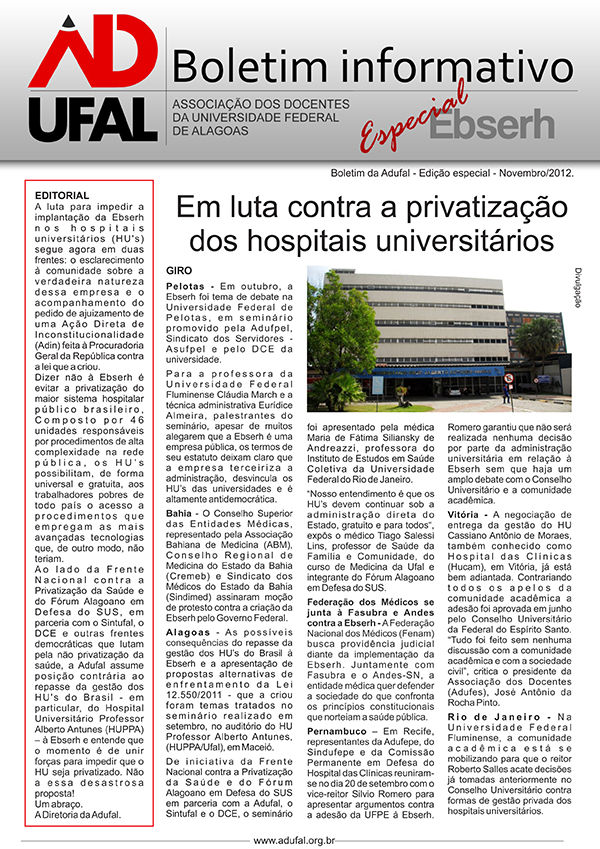 Veja páginas 1 e 2 do Boletim especial sobre a Ebserh